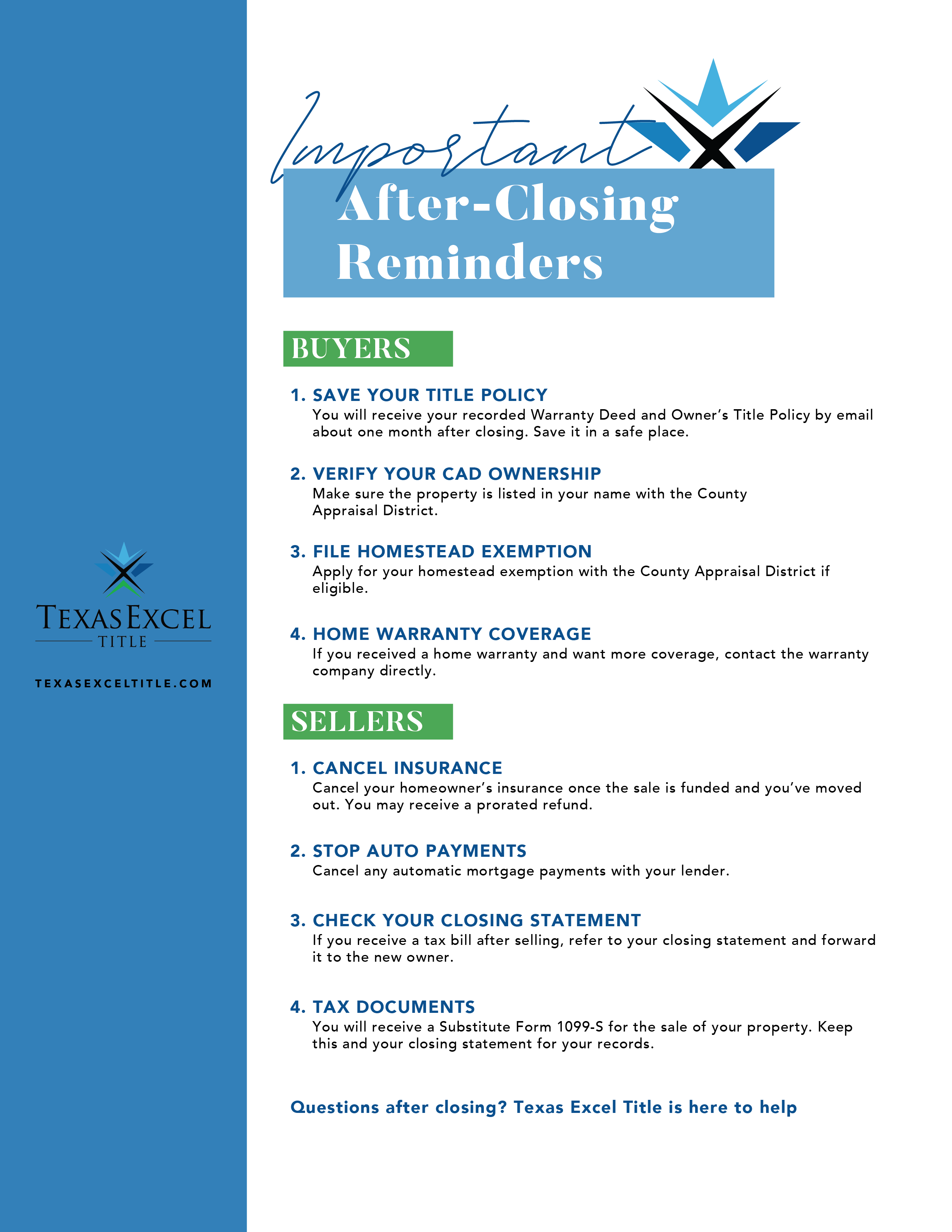 Important After-Closing Reminders